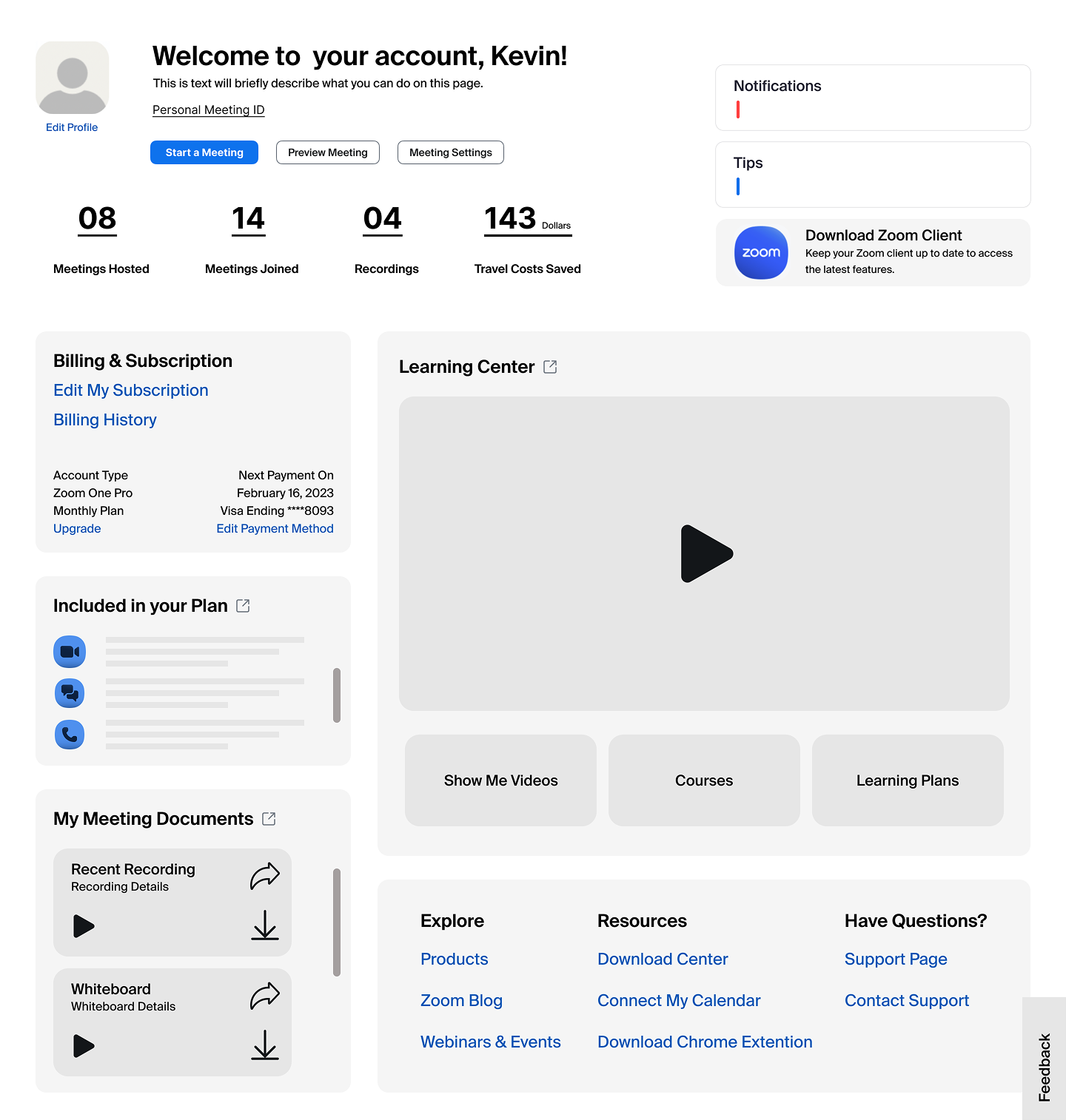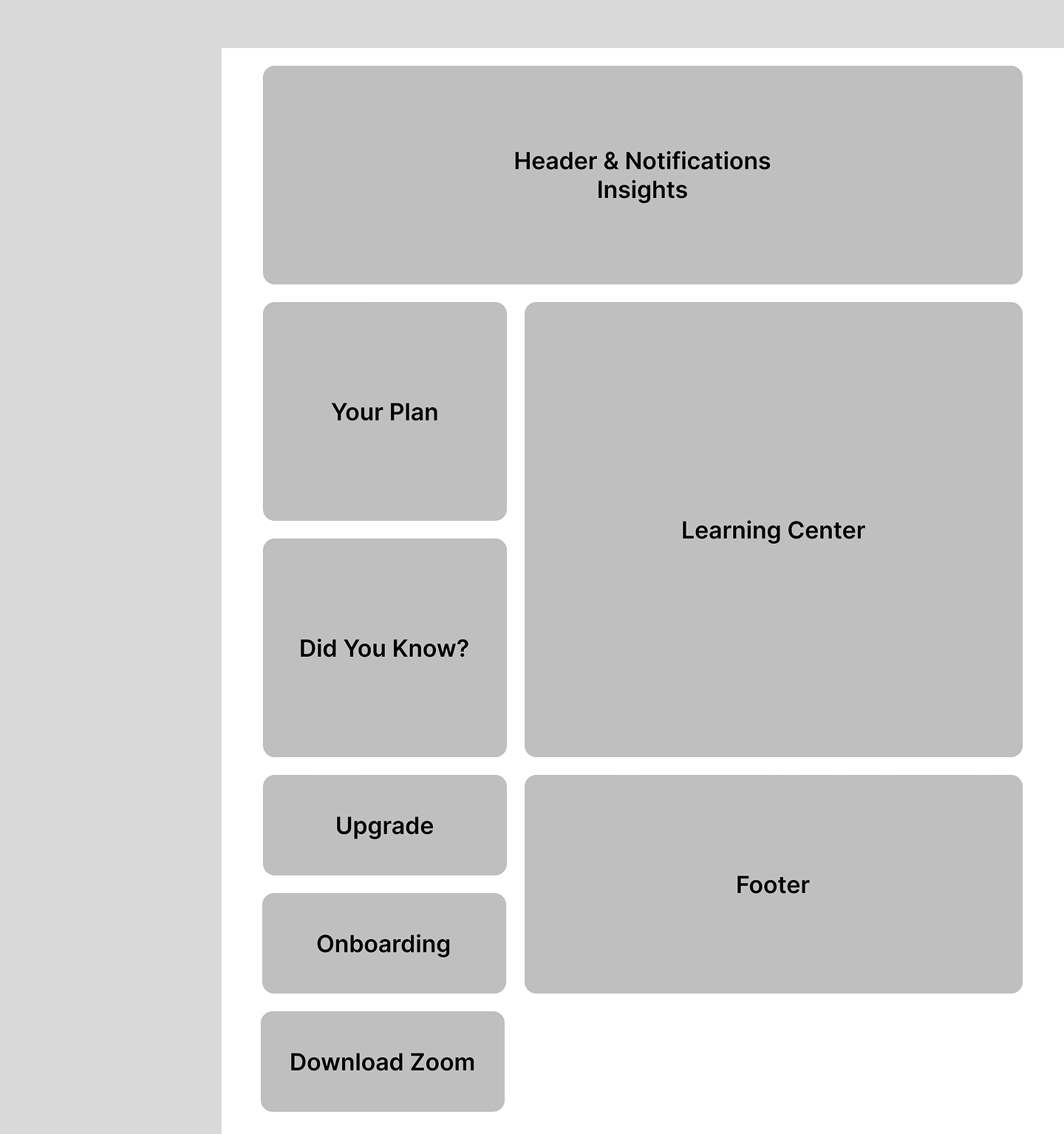 Zoom’s Home Destination was hard to navigate, failed to surface key features, and lacked personalization, resulting in low engagement and missed opportunities for retention and upsell.