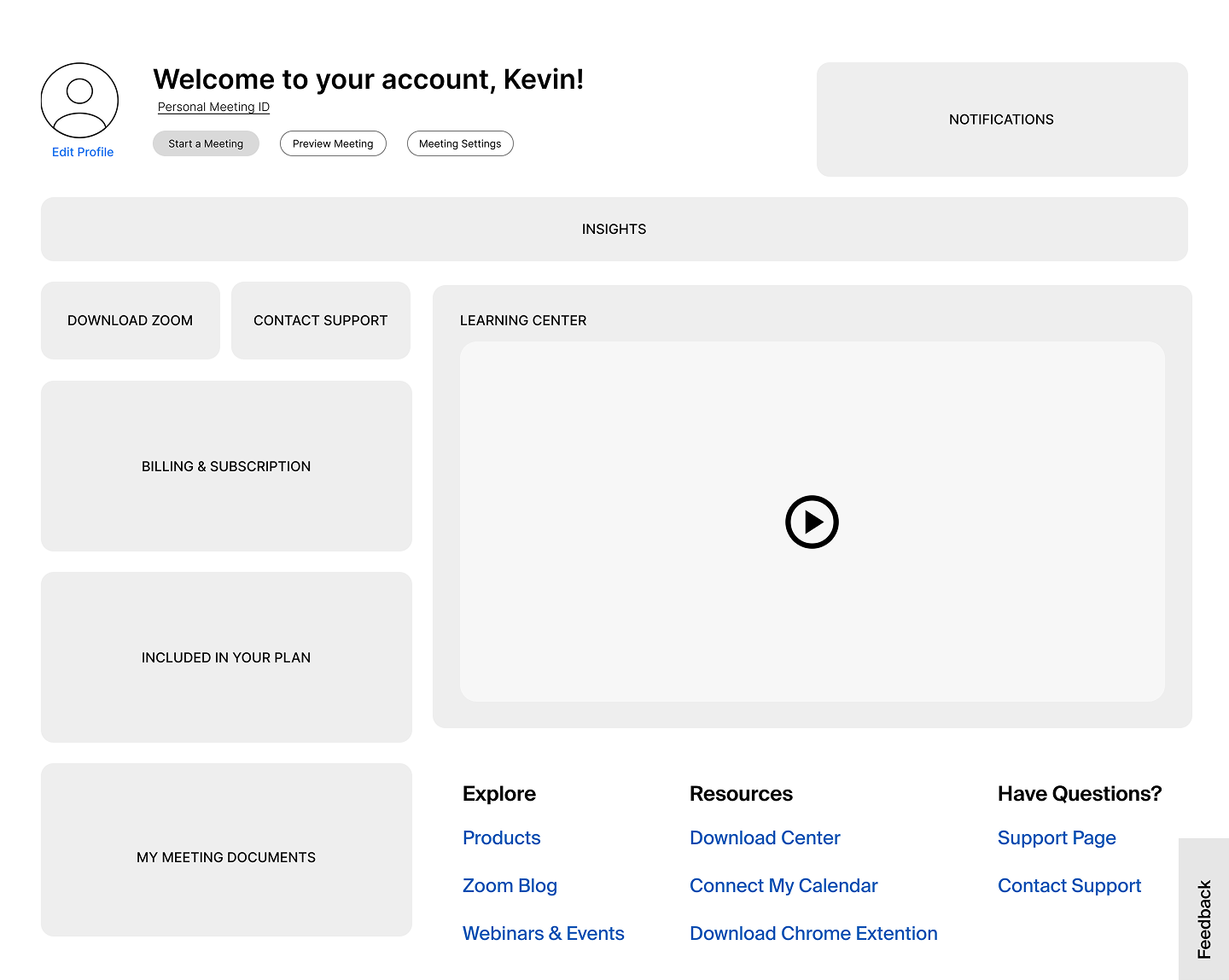 Home Destination is the first thing users see when they log into Zoom. But the existing page was falling short: users struggled to find what they needed, key features went unnoticed, and there was little reason to return.