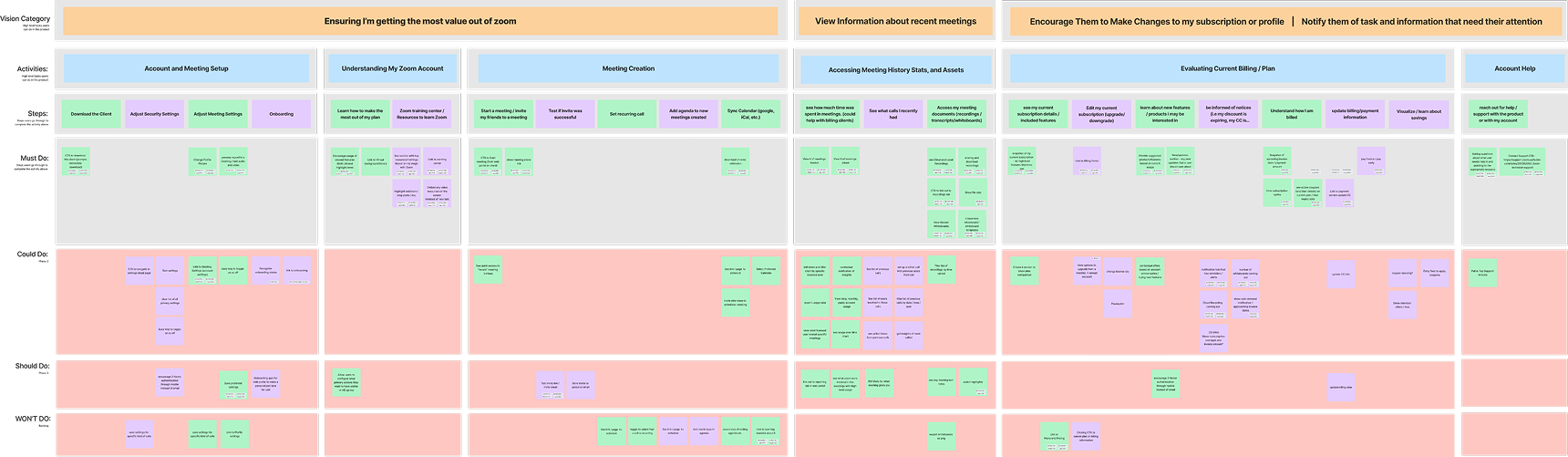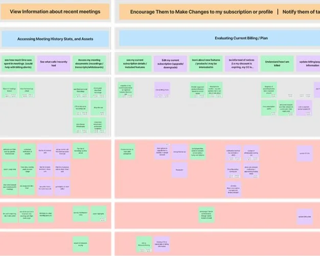 Affinity Mapping uncovered key user activities like setup, scheduling, exploring features, managing plans, and accessing support. Understanding these tasks helped define the necessary user journey steps.