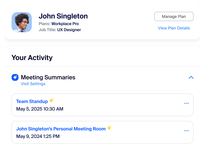 We created a modular dashboard that adapts to each user by highlighting upcoming meetings, cloud recordings, and smart feature recommendations based on their usage.